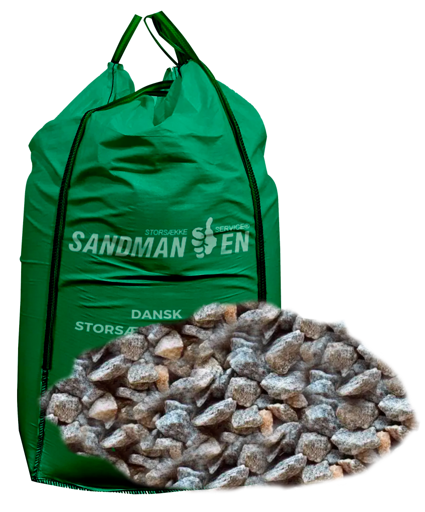 1 m3 (1500 kg) dækker ca. 20 m2 i et lag af 5 cm.